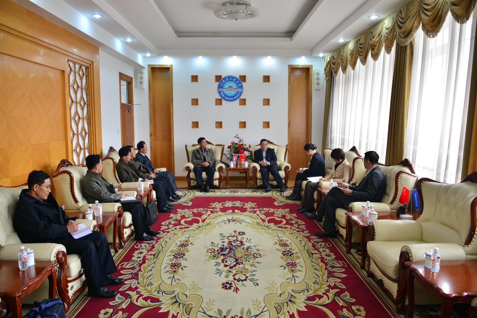 10月21日,以平壤机械大学副校长姜一雄为团长的朝鲜教育工作代表团来校交流。副校长杨德森在主楼贵宾会议室会见了代表团一行。 杨德森对朝鲜教育工作代表团一行表示欢迎。他简要介绍了我校的历史沿革和办学情况,并就我校学科专业建设、院系设置以及人才培养理念、思路和具体举措向来宾进行了介绍。 姜一雄表示,高等教育是两国交流非常重要的组成部分。代表团所有成员在国内都看过陈赓将军的有关事迹,这次来到学校感觉非常亲切。他希望通过以我校自动化专业和机械工程专业为切入点进行深入交流,了解并学习我校工科学科专业体系、专业发展经验,以及理论与实践相结合的人才培养举措。