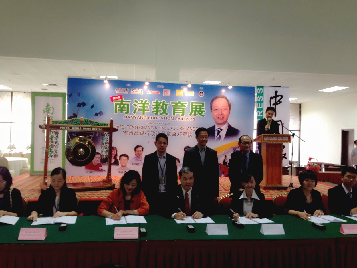 12月21日,由马来西亚南洋商报和马来西亚亚洲教育集团主办的第十六届南洋教育展在马来西亚吉隆坡举行。 北京航空航天大学、北京交通大学、北京理工大学、大连理工大学、上海中医药大学、台湾岭东科技大学、台湾景文科技大学、台湾华夏科技大学、台湾辅英科技大学、台湾南荣科技大学、台湾东南科技大学等中国大陆、台湾以及马来西亚的45所大专院校参加了此次教育展。我校由教务处、国际处、国际学院组成的代表团参展。开幕式上,参展的中国大陆和台湾高校代表与马来西亚亚洲教育集团签署了共同推动两岸三地的高等教育合作的意向书。