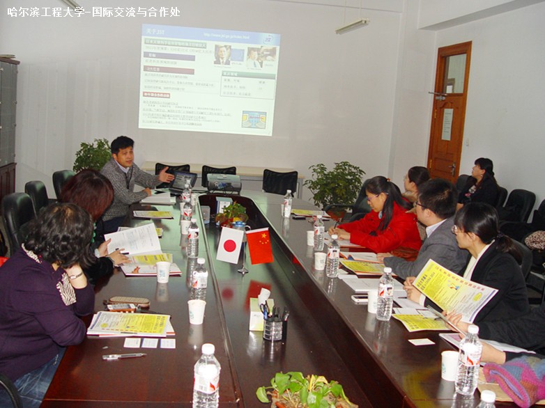 12月24日上午,日本科学技术振兴机构(简称“JST”)中国综合研究交流中心主任单谷来校访问并进行“樱花科技计划项目宣讲会”,国际处副处长迟淼在主楼四楼会议室会见来宾并出席会议。参加此次会议的有教务处副处长裴然、船舶工程学院李嘉宁、航天与建筑工程学院副院长毛继泽、计算机学院副院长韩启龙、材料科学与化学工程学院刘立佳、核科学与技术学院副院长高璞珍、外语系副主任邓晓明等。