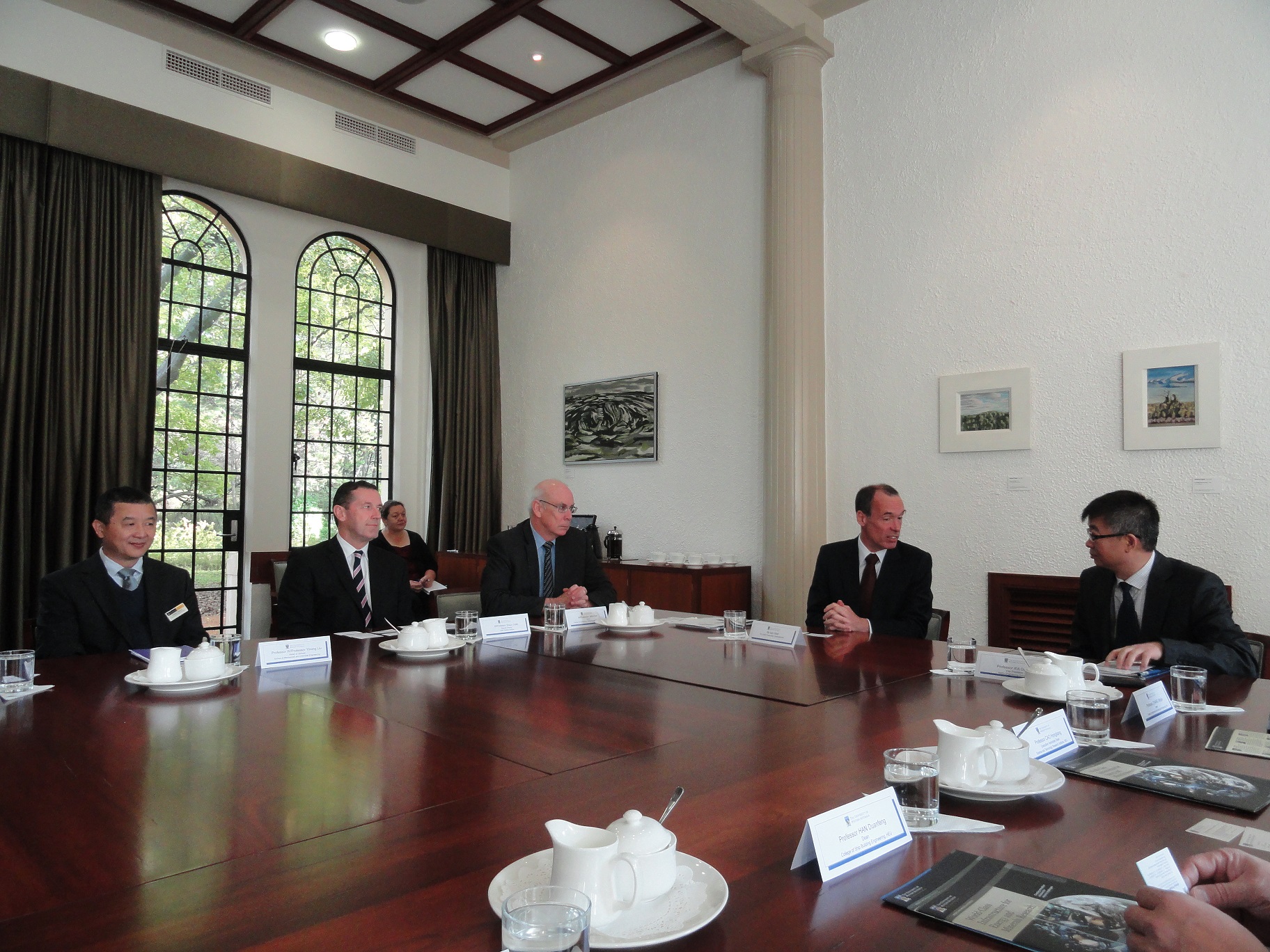 西澳大学创建于1911年,2014年QS世界大学排名第84位,是澳洲声名卓著的顶尖“八大”名校之一,位于金属、矿产资源丰富的西澳大利亚州珀斯市,在海洋工程、离岸工程领域享有盛誉。该校副校长万胤忠,工学部部长约翰�戴尔,电子、电气与计算机工程学院院长布莱特�尼纳,机械与化学工程学院院长、我校客座教授刘亦农,海洋研究院副主任肖恩�科林,土木、环境与采矿工程学院教授,以及我校在西澳大学联合培养的博士生等与我校代表团在海洋工程、海洋结构物、流体力学等学术领域进行了深入交流。
