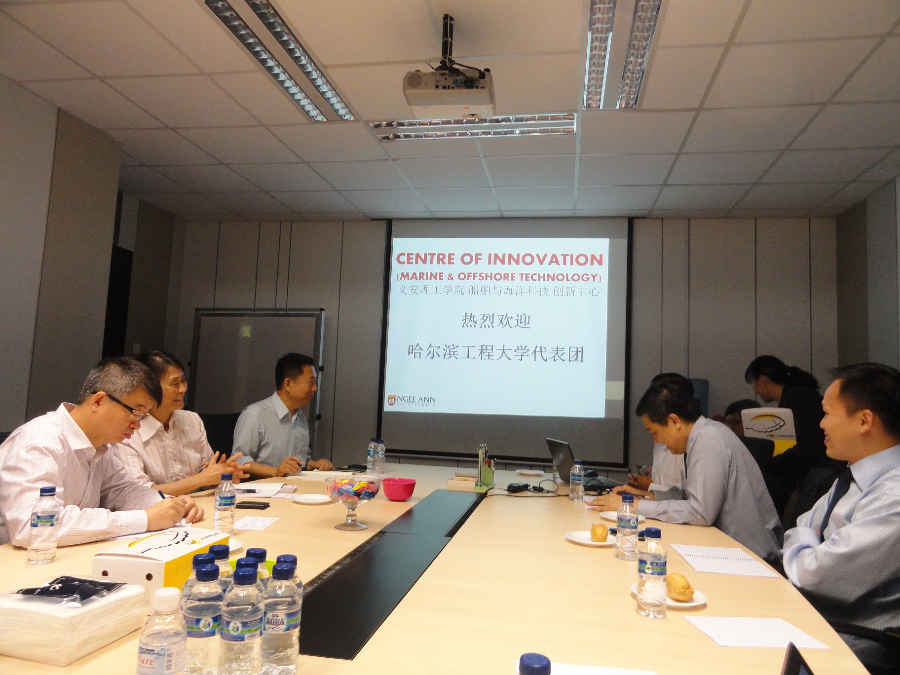 义安理工学院成立于1963年,是新加坡教育部直属的高等教育学府。在该校的船舶与海洋科技创新中心,该校副校长林国伟、工学部主任梁毅雄、国际发展顾问许伟雄、船舶与海洋科技创新中心主任苏布拉塔�禅达等会见了夏桂华一行。双方在造船和海上平台建设、水下作业装置、水下探测及测试等领域进行了交流。义安理工学院同时表达了派学生来我校船舶与海洋工程专业进行短期学习的意愿,双方达成初步意向。