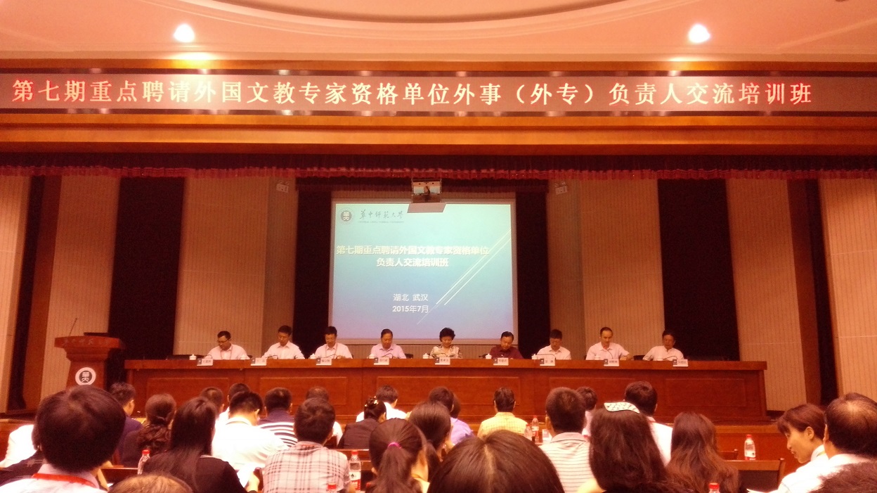 7月9日,由国家外国专家局组织的“第七期重点聘请外国文教专家资格单位外事(外专)负责人交流培训班”在华中师范大学召开,国内近300所高校引智负责人参加,国际处处长刘志强代表学校参会。