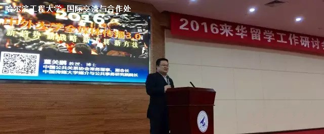 | 4月14日至15日,“2016来华留学工作研讨会”在西北工业大学召开。本次研讨会由中国教育国际交流协会主办,西北工业大学、来华留学网承办。 教育部国际合作司留学处处长安延出席会议并致辞。中国教育国际交流协会秘书长生建学代表主办方介绍了2016年协会的重点工作。中国传媒大学教授、中国公共关系协会常务理事董关鹏做了题为“中外大学全媒体传播3.0时代”的主题报告 我校国际学院副院长丁学忠,研究生院刘岩和国际处杨宇宁代表学校参会,并分别参加了来华留学宣传材料与英文网站国际化推广;英文授课课程体系建设思路探索;中外院校、机构合作模式创新三个分会场的大会讨论。