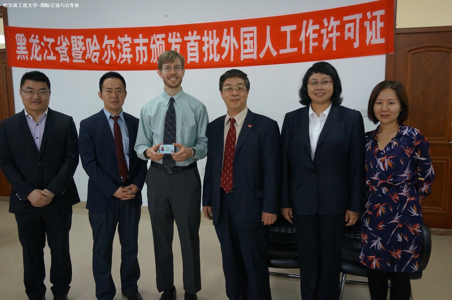 6月5日,黑龙江省人力资源和社会保障厅、哈尔滨市人力资源和社会保障局在哈尔滨市民大厦举行了黑龙江省首批来华工作许可证颁证仪式,共有来自我校和哈尔滨工业大学、东北林业大学、黑龙江大学、黑龙江省外国语学院和中国农科院哈尔滨兽研所7家单位13名外籍专家和教师获得黑龙江省首批《外国人来华工作许可证》。我校外籍教师Stephen John Schmidt获得外国高端人才(A类)《来华工作许可证》,全省共有6人获得A类《来华工作许可证》。 黑龙江省从2017年5月1日起全面上线《外国人来华工作许可管理服务系统》,同时开通了“外国高层次人才绿色服务通道”,为外国高层次人才(A类)来华工作办理相关手续提供了“容缺受理服务、全程无纸化审批、不超过五年期限工作许可证”等服务,为外国人在华工作提供便利。 外国人工作许可证是由人力资源和社会保障部、国家外国专家局联合印制,卡面载明了外国人的姓名、性别、国籍、类别、发证日期、发证机关、许可编号、照片等信息,实行外国人一人一码,终身不变,动态记录其在华工作管理、服务、信用记录等情况,扫描卡面的二维码即能获取外国人的详细信息。这也是在我国工作外国人的合法工作证件。
